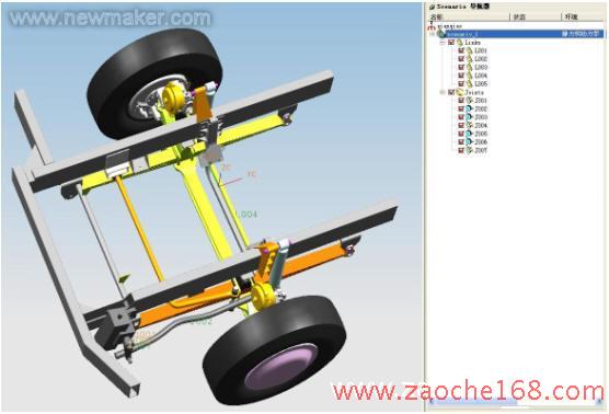 現(xiàn)在用功能強(qiáng)大的UG軟件作為設(shè)計(jì)分析工具提高了工作效率與工作質(zhì)量,同時(shí)通過(guò)UG運(yùn)動(dòng)模塊的動(dòng)態(tài)模擬分析更便于對(duì)設(shè)計(jì)結(jié)果的驗(yàn)證與檢查、評(píng)審。轉(zhuǎn)向分析是開(kāi)發(fā)新車新型換裝車橋過(guò)程中重要的設(shè)計(jì)分析環(huán)節(jié)。大大提高了設(shè)計(jì)的準(zhǔn)確性,設(shè)計(jì)結(jié)果與實(shí)際產(chǎn)品狀態(tài)非常一致。本文主要對(duì)UG運(yùn)動(dòng)分析模塊在轉(zhuǎn)向分析中的應(yīng)用做詳細(xì)的介紹。