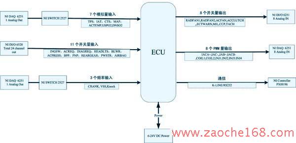 為了模擬發(fā)動機特定的實際工作狀況,需要在同一系統(tǒng)實現(xiàn)多輸入輸出信號的集成控制和采集。發(fā)動機管理模塊作為汽車傳動力控制的核心部件,其生產(chǎn)質(zhì)量檢測是保證整個產(chǎn)品生產(chǎn)過程完整的重要步驟。由于輸入輸出信號繁多,使用傳統(tǒng)的儀器很難實現(xiàn)很好的系統(tǒng)集成和通信。隨著測試過程的日趨復雜化和生產(chǎn)過程越來越高的自動化要求,設計開發(fā)一個界面友好簡單、性能穩(wěn)定、高度集成化和自動化的測試系統(tǒng)的需求也日漸迫切。