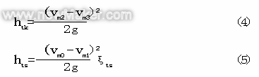 式中:htk—突然擴(kuò)大的單位能量損失,m;