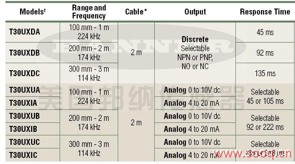 邦納第二代超聲波傳感器T30UX技術(shù)參數(shù)及尺寸圖: