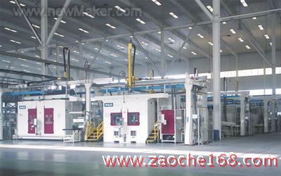 鋁輪轂的熱處理工藝為固熔加時效處理(T6處理),工藝要求爐溫均勻性≤±5℃。熱處理設(shè)備按爐型分為周期爐、連續(xù)爐,按能源形式分為天然氣、電能。輪轂在爐內(nèi)的放置多采用料架,產(chǎn)品分開放置以防輪轂變形。連續(xù)熱處理爐按傳動方式又分輥棒式、吊筐式、推盤式、步進(jìn)式。其中連續(xù)熱處理爐的爐溫均勻性好(±3℃)、產(chǎn)品質(zhì)量好、生產(chǎn)效率高、節(jié)能,是大批量生產(chǎn)的主選設(shè)備,而燃?xì)獾蹩鹗胶蜔o料筐式連續(xù)熱處理爐是該類設(shè)備的發(fā)展方向。小批量間歇式生產(chǎn)時可以使用周期爐。由于連續(xù)熱處理爐的生產(chǎn)量大,因此設(shè)備的可靠性和控制水平十分重要,為了工藝的可追述性,要配備溫度記錄儀。為方便操作,提高車間面積利用率,熱處理生產(chǎn)線以U型布置或雙層布置為佳。該設(shè)備以國產(chǎn)為宜,施工維護(hù)便利。