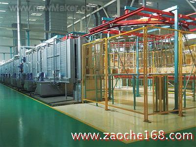 先進(jìn)的涂裝自動生產(chǎn)線由表面預(yù)處理、烘干、靜電粉末噴涂、噴漆、固化等組成,傳輸系統(tǒng)以地面鏈的方式將鋁輪轂水平放置、鋁輪轂可自轉(zhuǎn)為好,并帶有搬運機(jī)器人、粉末回收系統(tǒng)、粉末更換系統(tǒng)和廢水處理裝置。采用的自動化涂裝工藝裝備中,選用了靜電噴槍和高速靜電旋杯噴槍技術(shù)(轉(zhuǎn)速20000r/min以上)、環(huán)保型無鉻化預(yù)處理技術(shù)、噴粉技術(shù)、環(huán)保型水性漆技術(shù),由于生產(chǎn)線的生產(chǎn)效率高、節(jié)省涂料、對環(huán)保好,是鋁輪轂涂裝技術(shù)發(fā)展的新趨勢,其中噴槍、處理劑、粉劑、水性漆以進(jìn)口產(chǎn)品為佳,目前只有個別廠家在使用。