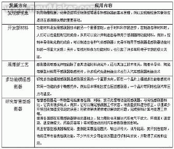 現(xiàn)代汽車上微機電技術(shù)發(fā)展的車用傳感器發(fā)展趨勢應(yīng)朝多功能化、模塊化、智能化、微型化技術(shù)方向發(fā)展。