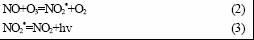 式中,NO2為激發(fā)態(tài)NO2;h為普朗克常量;v為光量子頻率。