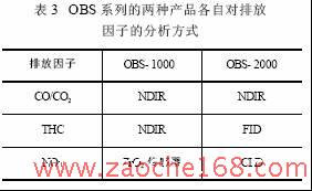 OBS(On-Board Emission Measurement System)系列車載排放測(cè)量系統(tǒng)是由日本HORIBA公司開發(fā)的。由防振型排放測(cè)量單元、主控筆記本電腦以及相關(guān)軟件、傳感器和帶有PITOT流量計(jì)的采樣接頭等組成?,F(xiàn)在普遍使用的OBS系列包括OBS-1000和OBS-2000兩種系列型號(hào)。這兩種型號(hào)主要差異在于對(duì)不同排放因子的分析單元上的不同,但是測(cè)試流程和制造理念還是相同的。表3列出的是OBS的兩種產(chǎn)品在對(duì)排放因子分析時(shí)各自使用的分析儀。從表3中可以發(fā)現(xiàn),OBS-2000系列對(duì)OBS-1000系列進(jìn)行了改進(jìn)。分析方式的改進(jìn)增大了儀器分析的靈敏度,而且減小了整套儀器的體積和重量。