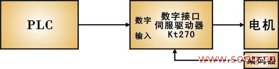 隨著驅(qū)動(dòng)控制技術(shù)的發(fā)展,數(shù)字化技術(shù)在驅(qū)動(dòng)產(chǎn)品上的應(yīng)用,數(shù)字式的伺服驅(qū)動(dòng)器可以具有位置閉環(huán)功能,即可以接受外部上位機(jī)(如PLC)發(fā)出的脈沖信號(hào),脈沖信號(hào)的頻率對(duì)應(yīng)電機(jī)的運(yùn)行速度,脈沖的個(gè)數(shù)對(duì)應(yīng)電機(jī)運(yùn)轉(zhuǎn)的角度。而且隨著電力電子技術(shù)的發(fā)展,數(shù)字式伺服驅(qū)動(dòng)系統(tǒng)產(chǎn)品的價(jià)格大幅下降且可靠性也得到了極大的提高。因此,采用PLC位置控制方式也成為了可能。其工作方式如圖3所示: