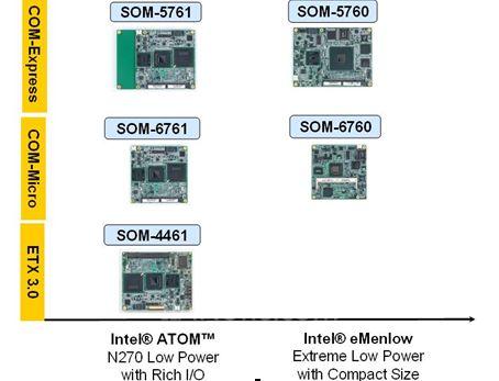 研華即將發(fā)布采用 Intel? Atom Z530 解決方案的 SOM-5760 COM-Express 模塊,該模塊可用于要求超低功耗、長(zhǎng)電池壽命的消費(fèi)類手持設(shè)備中。采用 Intel? N270 平臺(tái)的 SOM-5761 可提供多種 I/O 接口,如 PCIe、PCI、USB 和 SATA,非常適合用于低功耗應(yīng)用中。