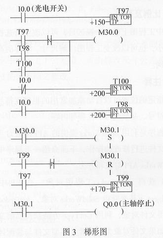 C7632液壓半自動多刀車床是機械行業(yè)擁有量較多的一種半自動機床。它采用二極管矩陣順控裝置及繼電器邏輯控制系統(tǒng),液壓驅(qū)動上下刀架作縱橫兩個方向的運動,裝有液壓卡盤。其加工自動化程度及生產(chǎn)效率較高,適用于較大批量工件的車削加工。但由于該機床系統(tǒng)采用的是分立元件,易出故障,且維修比較麻煩,影響了機床性能的正常發(fā)揮。 我們根據(jù)該機床的問題,采用可編程序控制器改造其控制系統(tǒng),克服了上述缺點,使機床工作可靠、維修方便,大大提高了機床的工作效率,取得了較好的經(jīng)濟效益。 的選型 (1)控制對象的輸入、輸出點數(shù)輸入點即為機床的控制按鈕、工作選擇開關、行程開關、接近開關等。輸出點是控制電動機的接觸器、控制液壓動作的電磁閥及指示燈等。 考慮到節(jié)省改造費用,應盡量壓縮輸入、輸出點數(shù)。在某些場合,輸入點可以一點兩用。如某行程開關只在自動循環(huán)時有用,而某按鈕只在手動調(diào)時用,當輸入點不夠時,則可將上述兩個輸入信號共用一個PLC輸入點,利用PLC的轉(zhuǎn)移標號指令,不會使兩個信號混淆。同樣,為節(jié)省輸出點,也可將與自動控制無關的輸出點,如電動機的起動、停止,仍用強電回路控制。 (2)控制對象的輸入、輸出類型一般的機械加工設備,采用開關量控制,選用直流輸入,繼電輸出型的PLC。輸入還有交流型和TTL電平型,而輸出則有晶閘管型及直流晶體管型,可適應不同的需要。另外還有各種特殊類型的模塊,如A/D、D/A模塊,外部可調(diào)計時/計數(shù)器模塊,高速計數(shù)器模塊等。 程序的編制步驟 (1)編制開關表即將機床的各輸入輸出元件分配到PLC輸入輸出點上,即分配地址。以C7532車床的部分開關表為例,見附表。 (2)按照加工工藝要求,編制動作流程圖或開關動作表以C7632車床的下刀架的一種加工流程為例,動作流程圖如圖1所示。 (3)擬訂程序框圖程序框圖可參照計算機程序框圖的編制方法。以C7632車床的程序框為例,如圖2。 (4) 編制梯形圖程序根據(jù)程序框圖,開關表及動作表即可直接在編程器鍵盤上鍵人程序。編制程序可分段進行,先編制自動循環(huán)程序段、手動調(diào)整程序段、初始化程序段,后分段模擬運行調(diào)試后串聯(lián)起來。運用轉(zhuǎn)移、標號指令,可將復雜的程序分解成功能程序段,有利于程序編制及調(diào)試。以半自動車床自動循環(huán)與手動調(diào)整程序為例,若開關1127為手動/自選擇開關,可按如下方法編制程序(見圖3): 當開關1127接通時,程序按下列順序掃描執(zhí)行:1、3、…、20、40,再返回到開頭,執(zhí)行手動調(diào)整程序;反之,開關1127斷開,程序掃描順序為2、21、…、40,再返回至開頭,執(zhí)行自動循環(huán)程序。 其自動循環(huán)工作段的程序,可采本控制器編程語言中特地為順序控制設計的步進器功能編制。 梯形圖編制完成,并通過模擬器模擬運行后,通過打印機打印梯形圖文本。當PLC安裝在現(xiàn)場設備上后,可通過編程器與其聯(lián)機,采用“故障檢測”方式逐點檢查現(xiàn)場設備的輸入、輸出元件是否連接正確,工作是否正常。在聯(lián)機狀態(tài)下,運行梯形圖程序,并對運行結(jié)果進行監(jiān)測、修改,直至程序運行完全符合要求,即可使 PLC控制設備正常工作。 3.結(jié)語 采用PIC改造C7632車床后,車床的電氣故障減少90%以上,工作效率大大提高。由于PLC的控制功能強,使機床的自動化程度提高,又因為程序編制時增加了各種保護功能,使機床不會因誤操作而造成損壞。 整個改造過程歷時不到一周,停機時間只有兩天,費用不到3000元。因此我們認為,采用PLC改造C7632車床及類似的機床,是完全可行且易見成效的技改捷徑。 |