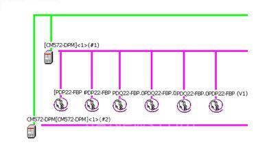 圖5中,F(xiàn)BP系統(tǒng)中采用集成Profibus協(xié)議的PDQ22裝置,Profibus和其它現(xiàn)場總線都采用標準RS485方式,每段限制32臺的主/從站數(shù)量,如果需要連接更多的設(shè)備則需要加中繼器。使用PDQ22可以每個連接4臺設(shè)備到Profibus DP總線,但是在總線中作為一個節(jié)點,可節(jié)省總線節(jié)點數(shù)量。具有以下特點: