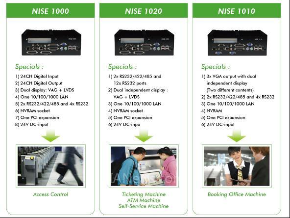 無風扇設計的 系列是高可靠性能的行業(yè)專用產品,適用需求可靠性,穩(wěn)定性并長時間作業(yè)環(huán)境。無風扇全密閉的機構設計,機箱外殼象一個巨大的散熱器可以快速轉換系統(tǒng)熱量,確保惡劣苛刻環(huán)境下(如高低溫,潮濕,多粉塵)系統(tǒng)的穩(wěn)定運行。主板I/O接口的一體化板載設計,確保系統(tǒng)在振動的環(huán)境中可靠運行。采用高性能低功耗處理器,可應因不同應用而選用從Celeron? M 600 MHz 到 Pentium? M 1.8GHz CPU, 系列多達48路 DIO (24路數字量輸入和24路數字量輸出)與周邊傳感器連接,如閘機控制,14路串口便利連接周邊串口設備,例如自動售票機和自動售檢票機。同時配置的PCI/PC 104擴展槽,增強系統(tǒng)的擴展性,內置板載的NVRAM確保計算機突然斷電時重要數據的不丟失。