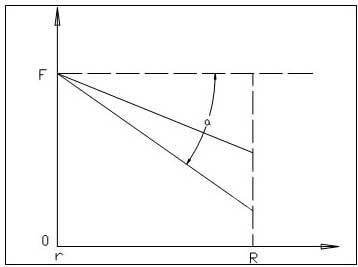 張力錐度角α的設(shè)置應(yīng)使卷徑達到最大卷徑R時張力值不出現(xiàn)負(fù)值為限。