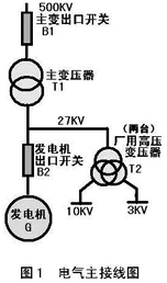 為提高機組運行的靈活性,與二期無GCB不同,三期的兩臺發(fā)電機均配置了GCB,但不設(shè)高壓備用變壓器。在發(fā)電機未投入時(GCB斷開), 10KV/3KV廠用電可直接通過主變/廠高變?nèi)∽?500KV電網(wǎng),見圖1。因此,三期的運行和連鎖方式與二期有所不同。當(dāng)機組運行中斷開Bl時,發(fā)電機通過T2帶廠用電運行,即 FCB 。而當(dāng)斷開B2時,則由500KV線路側(cè)通過Bl, T1向 T2供廠用電,因此,主變壓器出口開關(guān)B1不參與機、電、爐連鎖跳閘??偟臋C、電、爐連鎖原則如下: