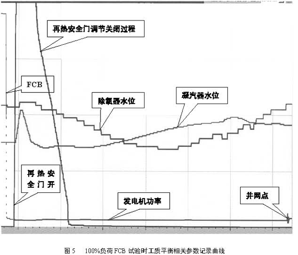 尤其是過渡過程中的工質(zhì)平衡良好,完全沒有了二期900MW 機組在 FCB后由干再熱蒸汽從安全門大量排空導(dǎo)致除氧器和凝汽器水位大幅下降的緊張局面。見圖 5 :