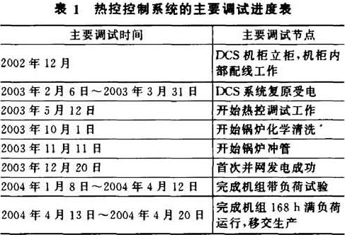 5號(hào)機(jī)組熱控控制系統(tǒng)的主要調(diào)試進(jìn)度如表