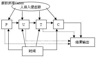 在數(shù)據(jù)檢測(cè)級(jí),數(shù)據(jù)融合的結(jié)構(gòu)模型主要有串行、并行、帶反饋并行、樹(shù)狀和分散等幾種類型。針對(duì)不同的目標(biāo)和應(yīng)用領(lǐng)域,可以選用一種或幾種結(jié)構(gòu)混合使用。在防盜監(jiān)測(cè)中,可以采用如圖2所示的串行數(shù)據(jù)檢測(cè)融合結(jié)構(gòu)模型,能夠較為準(zhǔn)確地獲取現(xiàn)場(chǎng)人體入侵的情況。首先由熱釋電紅外傳感器(P)檢測(cè)是否有人體輻射出的中心波長(zhǎng)為9~10μm的紅外線,進(jìn)行判決,把結(jié)果傳到超聲傳感器(U)節(jié)點(diǎn),在此融合這兩個(gè)傳感器的檢測(cè)結(jié)果形成一個(gè)新的判決,依次類推,再傳到多普勒傳感器(T),CCD傳感器(C)構(gòu)成的節(jié)點(diǎn),最后融合輸出判決結(jié)果。