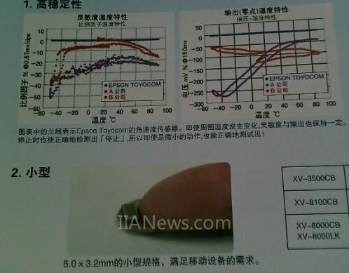 該公司參展人員介紹道:“這里我們主要用到了角速度傳感器,它可以精確地檢測(cè)出物體的變化,從而準(zhǔn)確地顯示出來(lái)。大家都知道剖析富士高性價(jià)比入門(mén)級(jí)數(shù)碼相機(jī)――A330">數(shù)碼相機(jī)的‘防抖補(bǔ)正功能’,但是卻有很多人不知道這項(xiàng)防抖補(bǔ)正技術(shù)中使用了角速度傳感器大的秘密?!苯撬俣葌鞲衅魇侵笝z測(cè)出測(cè)定旋轉(zhuǎn)運(yùn)動(dòng)時(shí)所需的角速度,即以時(shí)間為單位的角度的變化量的元器件。照相機(jī)的防抖補(bǔ)正是通過(guò)防抖來(lái)測(cè)試出人的動(dòng)作來(lái)進(jìn)行補(bǔ)正的。人的動(dòng)作是以腕關(guān)節(jié)為中心的旋轉(zhuǎn)運(yùn)動(dòng)為主體的。為了測(cè)試這個(gè)旋轉(zhuǎn)運(yùn)動(dòng),檢測(cè)角速度(以時(shí)間為單位的角度的變化量)就是角速度傳感器的重要使命。通過(guò)檢測(cè)角速度,就能正確地測(cè)試各種各樣的動(dòng)作。EPSON Toyocom的角速度傳感器以水晶為材料,即使周?chē)鷾囟劝l(fā)生變化,靈敏度·零點(diǎn)輸出也能保持穩(wěn)定,實(shí)現(xiàn)了小型化并達(dá)到了高度的穩(wěn)定性。為此,被很多數(shù)碼相機(jī)所采用。愛(ài)普生公司最近正在探索應(yīng)用于如導(dǎo)航系統(tǒng)或游戲等,需要檢測(cè)人或物體的動(dòng)作的商品,是具有廣泛發(fā)展前途的新型晶體元器件。告訴你清晰圖像的秘密:角速度傳感器"