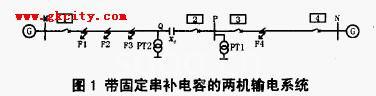 證,例如文獻(xiàn)[1 }7]。文獻(xiàn)[fg}9]則介紹了使用RTDS和保護(hù)裝置實(shí)物進(jìn)行實(shí)時(shí)仿真的方案,該方案準(zhǔn)確可靠但是成本也比較高。還有一種方案就是對(duì)繼電保護(hù)進(jìn)行建模,用以代替保護(hù)裝置實(shí)物,這種方案極大地降低了實(shí)驗(yàn)成本,而且在保證模型正確性的前提下也具有很高的可信度。文獻(xiàn)[10,川介紹了使用保護(hù)模型來(lái)實(shí)現(xiàn)電力系統(tǒng)與繼電保護(hù)之間的閉環(huán)仿真方法。本文采用的研究方法是繼電保護(hù)建模仿真,仿真工具為PSCAD/EMTDC。在PSCAD中建立了固定串補(bǔ)電容和正序電壓極化的歐姆繼電器的詳細(xì)模型,實(shí)現(xiàn)了電力系統(tǒng)與繼電保護(hù)之間的閉環(huán)數(shù)字仿真,通過(guò)仿真分析研究了固定串補(bǔ)電容可能對(duì)距離保護(hù)帶來(lái)的影響,并提出了相應(yīng)的解決方案。本文所使用的仿真分析方法對(duì)于研究各種新型FACTS裝置對(duì)繼電保護(hù)的影響也具有一定的參考價(jià)值。