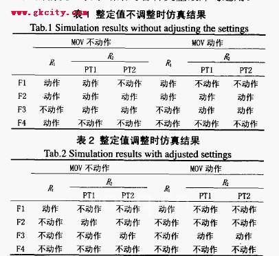 可以看到在整定值不調(diào)整的情況下若電容的過(guò)電壓保護(hù)能夠準(zhǔn)確動(dòng)作,那么各個(gè)繼電器在各種J清況下均能可靠動(dòng)作;若電容過(guò)電壓保護(hù)不動(dòng)作,那么可能出現(xiàn)超越保護(hù)的情況,這是不能允許的。因此必須對(duì)原有整定值進(jìn)行調(diào)整。從表2可以看到,調(diào)整整定值后超越保護(hù)現(xiàn)象不再出現(xiàn),但是保護(hù)范圍卻縮短了。這與前面理論分析的結(jié)果完全一致。