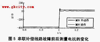無(wú)論是MOV還是空氣間隙開(kāi)關(guān),當(dāng)它們導(dǎo)通時(shí)都改變了距離繼電器所“看到”的電抗。但它們的影響還不僅限于此,當(dāng)MOV和空氣間隙開(kāi)關(guān)可靠動(dòng)作時(shí),還能夠有效地抑制低頻分量,縮短暫態(tài)過(guò)程,從而提高距離保護(hù)的可靠性。由此可見(jiàn)串補(bǔ)電容的過(guò)電壓保護(hù)對(duì)距離保護(hù)的影響至關(guān)重要。