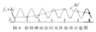 “拍頻”這個(gè)名稱說(shuō)明了這種測(cè)試方法的原理,輸入正弦波的頻率與A/D的采樣頻率之間有一個(gè)微小的差值,因?yàn)樾纬闪艘粋€(gè)拍頻,對(duì)測(cè)試波形不斷的采樣和轉(zhuǎn)換結(jié)果也是一個(gè)正弦波(見圖6)。這種測(cè)試方法本來(lái)是將轉(zhuǎn)換的數(shù)字信號(hào)經(jīng)過(guò)一個(gè)D/A轉(zhuǎn)換后在CRT上顯示出來(lái),觀察正弦波的平滑性。這樣即使是低速的D/A也可以應(yīng)用于測(cè)試?,F(xiàn)在我們利用Labview,在測(cè)試中將ATS60E測(cè)試系統(tǒng)的測(cè)試頻率設(shè)定為fs,波形發(fā)生器的輸出正弦波的頻率設(shè)定為fs+Δf。將采樣結(jié)果在Labview的圖表上輸出,那么輸出點(diǎn)連起來(lái)必然為一個(gè)正弦波。而轉(zhuǎn)換誤差會(huì)表現(xiàn)為波形的失真和不連續(xù)。對(duì)頻差的設(shè)置最理想的情況是(這種連續(xù)的采樣)使每個(gè)碼都有一次采樣到的機(jī)會(huì),保證圖表輸出覆蓋所有可能的碼的故障。例如,10bit A/D,20MHz的采樣率,最大3MHz的差頻就可以保證每個(gè)碼至少一次采樣。