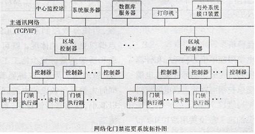 網(wǎng)絡(luò)化門禁巡更系統(tǒng)的組成如下圖所示: