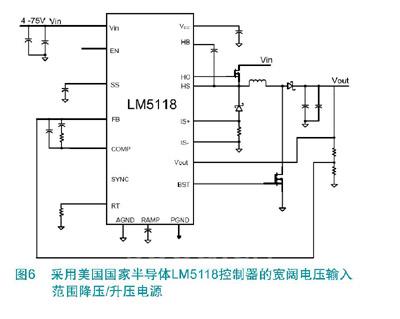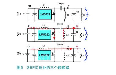 SEPIC是另一種可于寬闊輸入電壓要求下進行輸出電壓調(diào)節(jié)的常用拓撲技術。該拓撲由一個升壓/降壓-升壓級和一個降壓級組合而成。SEPIC是Single Ended Primary Inductance Converter的字首縮寫,也就是單端初級電感轉(zhuǎn)換器。字面中的單端表示只用一個開關來把能量送入轉(zhuǎn)換器內(nèi)。 SEPIC轉(zhuǎn)換器的功能可通過觀察圖5中的三個主要變換級來說明: 1)圖5上方表示了SEPIC于開關閉合前的初始狀態(tài)。SEPIC的電容器必須被充電至VIN,其時的輸出為0V,并且在所有元件中都沒有電流。 2)當開關閉合時,電壓VIN會被施加到電感器L1,這時通過L1的電流突然增加并把能量儲存,情況就如升壓拓撲一般。與此同時,相同的VIN亦會被施加到L2,而該電壓則來自SEPIC電容器。這時,SPEIC電容器開始將能量通過流經(jīng)L2的突增電流轉(zhuǎn)移到L2上。在此期間,二極管處于反向偏置。 現(xiàn)在,電流在兩個電感器中流動,即使開關再次斷開也不會出現(xiàn)瞬變。 3)當開關斷開時,流經(jīng)L1的電流無處可走,只好經(jīng)過SPEIC電容器流往輸出電容器及輸出端,而流經(jīng)L2的電流亦必須流往輸出端。 為了讓電流繼續(xù)流經(jīng)L1,開關上的電壓會被提升到VIN+VOUT+VDIODE的水平,而流經(jīng)SEPIC電容器的電流會再次把電容器充電,促使它能夠于開關閉合時把能量傳送到L2。 在SEPIC電容器與L2之間存在一個能量平衡,可以幫助決定SEPIC電容器的數(shù)值,而該數(shù)值越小,操作便越穩(wěn)定。 SEPIC轉(zhuǎn)換器的效率會低于一個純升壓或降壓拓撲。這主要是因為受關聯(lián)的外部元件數(shù)量增加所致。例如在電源路徑中的第二個功率電感器和SEPIC電容器的損耗便會影響電路整體的效率。SPEIC電容器是SEPIC轉(zhuǎn)換器中最關鍵的元素。因為所有的輸出功率都需要流經(jīng)它,所以會局限這種拓撲在較低功率方面的應用。 比較降壓/升壓拓撲與SEPIC拓撲會發(fā)現(xiàn):降壓/升壓只需一個電感器,而且電容器數(shù)量更少一個。當輸入電壓高于輸出電壓時,也就是大部份典型汽車常出現(xiàn)的情況,轉(zhuǎn)換器便會以降壓轉(zhuǎn)換器的形式運行,以產(chǎn)生較低的輸出紋波及為負載線路提供更高效率和更優(yōu)的瞬態(tài)調(diào)節(jié)。此外,SEPIC拓撲還可能會因SEPIC 電容器的寄生效應而引致更高的電磁干擾噪聲。 圖6是一個以LM5118仿電流模式降壓/升壓控制器來實現(xiàn)的降壓/升壓拓撲實例。 結(jié)論 在汽車冷起動應用中,單電感器降壓/升壓控制器較傳統(tǒng)的SEPIC轉(zhuǎn)換器具有更多的優(yōu)勢:更高的效率、更優(yōu)的動態(tài)性能及更低的電磁干擾噪聲。 |