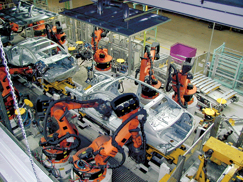 在寶馬丁果耳芬汽車廠的生產(chǎn)車間里