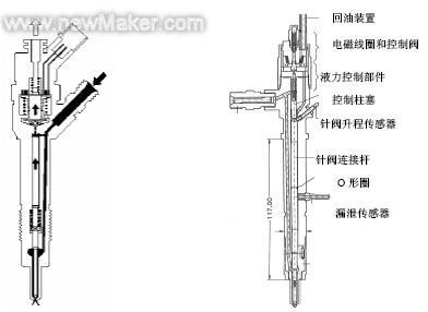 圖1 典型共軌噴油器 圖2 內腔式共軌噴油器