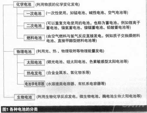 在各種電池中,分為化學電池、物理電池和生物電池三大類(見圖1)。