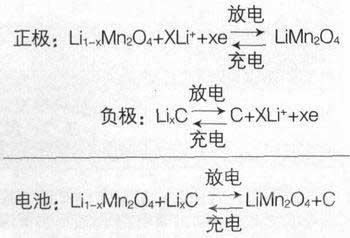 錳酸鋰離子蓄電池的充放電反應如下式所示。