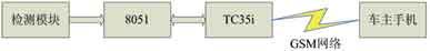 汽車報(bào)警系統(tǒng)主要由檢測(cè)模塊、處理器、GSM通信模塊、車主手機(jī)組成,系統(tǒng)總體結(jié)構(gòu)框圖如圖1所示。檢測(cè)模塊包括熱釋電紅外線傳感器和振動(dòng)傳感器,檢測(cè)模塊檢測(cè)到信號(hào)以后,通過軟件處理系統(tǒng)和GSM網(wǎng)絡(luò)將報(bào)警短信傳到車主手機(jī)或指定號(hào)碼手機(jī),從而實(shí)現(xiàn)了報(bào)警信號(hào)的長(zhǎng)距離傳輸。