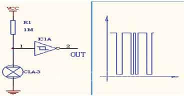 圖3 震動(dòng)報(bào)警電路圖及其輸出波形