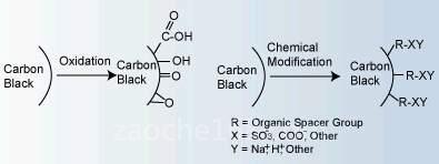 后處理就是后氧化工藝,羧基、羥基、醌基等基團,被增加到了炭黑上面。這些揮發(fā)性成分(900度以上)的增加,炭黑顏料更容易分散,穩(wěn)定性更好。而且,其他性能要求,比如耐候性、兩年之后的光澤下降程度,“佛羅里達(dá)氣候試驗”、耐化學(xué)品性能,等等都得到了滿足。