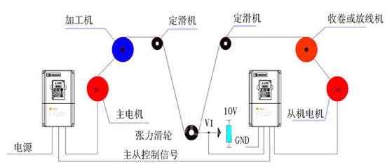 ◎ 牽伸電機采用S011Z3型變頻器,收卷電機采用S004G3型卷繞專用型變頻器(外配制動電阻)