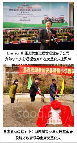 “Emerson 公司去年已經(jīng)承諾撥發(fā)專款用于四川災(zāi)區(qū)長期校園重建,Emerson 希望通過援建清泉小學(xué)教學(xué)樓,能讓更多的孩子早日在安全舒適的環(huán)境下學(xué)習(xí)?;仞佄覀冇袠I(yè)務(wù)發(fā)展地區(qū)的社區(qū)建設(shè),也正是我們 Emerson 公司應(yīng)該履行的良好企業(yè)公民責(zé)任?!痹倚勒f。