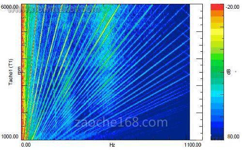 2 利用發(fā)動(dòng)機(jī)的扭振彩圖,可以清楚地判定曲軸的共振頻率。