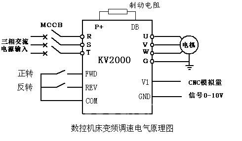 2)5.5kW數(shù)控車床 電動機參數(shù):額定功率:5.5kW,額定頻率:50Hz, 額定電壓:380V,額定電流:13A,額定轉(zhuǎn)速:1400r/min 機械傳動比:1:1.5 加工材料:45#鋼 實際測試性能指標(biāo):主軸轉(zhuǎn)速:200r/min(變頻器運行頻率9~10Hz), 進刀速度:60mm/min, 單邊進刀量:2mm;主軸轉(zhuǎn)速:450r/min(變頻器運行頻率22Hz左右), 進刀速度:60mm/min, 單邊進刀量:4mm,運行的效果很好,實際的進刀速度和單邊進刀量還可以加大。 客戶選配電機為3.7KW/50Hz/380V,選用變頻器型號為KV2000-G0037C-4T,制動電阻1000瓦/100歐姆。