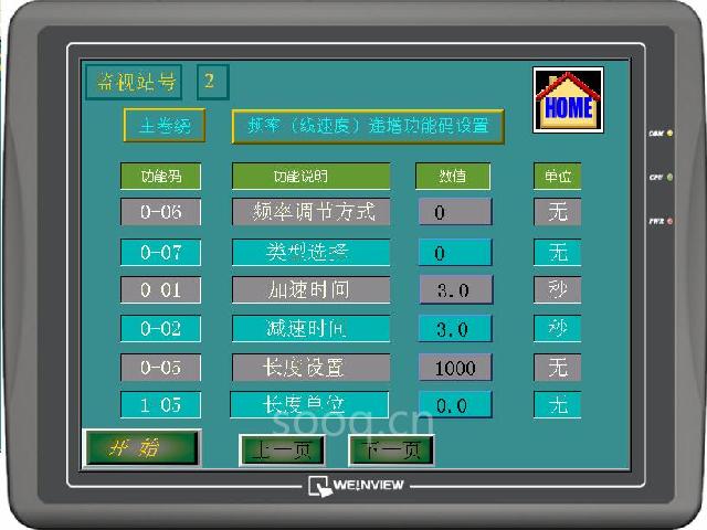 在WEINVIEW MT6000觸摸屏的其它界面上,主要顯示設(shè)定當(dāng)前變頻器的各項參數(shù),并與相關(guān)的功能碼一一對應(yīng),當(dāng)發(fā)現(xiàn)問題時,能快速知道是變頻器的幾號參數(shù)。