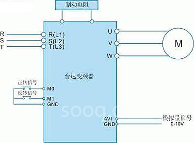 變頻器AVI/GND端子提供與數(shù)控系統(tǒng)速度模擬量,AVI接數(shù)控系統(tǒng)模擬量接口正信號(hào),GND接負(fù)信號(hào),信號(hào)為0-10V模擬電壓信號(hào),控制主軸轉(zhuǎn)速。M0/M1/GND為變頻器的正轉(zhuǎn)/反轉(zhuǎn)信號(hào)端子,通常由數(shù)控系統(tǒng)發(fā)出正轉(zhuǎn)信號(hào)FWD或者反轉(zhuǎn)REV,來驅(qū)動(dòng)中間繼電器,中間繼電器的常開接點(diǎn)接入變頻器M0/GND或者M(jìn)1/GND,從而控制變頻器的正反轉(zhuǎn)。