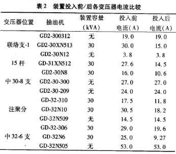 (2)分散補(bǔ)償時:由于抽油機(jī)布點(diǎn)較多,而實驗用D-STATCOM裝置數(shù)量有限,因此選取了七個點(diǎn)安裝裝置進(jìn)行實驗,測得數(shù)據(jù)如表2所示,根據(jù)表2的數(shù)據(jù)可以計算得出表3的結(jié)果。
