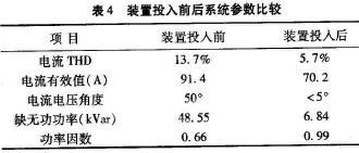 在某油田計量間安裝D-STATCOM裝置進(jìn)行實驗,測得的數(shù)據(jù)如表4所示。從表4的數(shù)據(jù)可以看一出,在D-STATCOM裝置投運(yùn)后,系統(tǒng)電能質(zhì)量的各項參數(shù)都有了比較大的改善和提高。