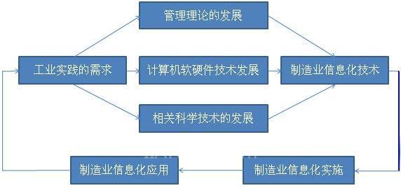在動(dòng)態(tài)多變的市場經(jīng)濟(jì)環(huán)境下,各個(gè)制造行業(yè)在發(fā)展的過程中,不斷提出需要解決的新問題。這些問題促使相關(guān)領(lǐng)域的科技人員研究相關(guān)的科學(xué)技術(shù),提出新的管理理論。同時(shí),隨著IT制造業(yè)水平的提升,在工業(yè)等各個(gè)行業(yè)的需求驅(qū)動(dòng)下,計(jì)算機(jī)基礎(chǔ)軟件和硬件技術(shù)飛速發(fā)展。在不斷創(chuàng)新的管理理論、科學(xué)技術(shù)的指導(dǎo)和計(jì)算機(jī)基礎(chǔ)軟件和硬件平臺(tái)的支撐下,制造業(yè)信息化供應(yīng)商開發(fā)出各類制造業(yè)信息化應(yīng)用軟件產(chǎn)品和配套的硬件產(chǎn)品(如條碼、RFID等自動(dòng)識別產(chǎn)品,PLC等工控產(chǎn)品),建立該領(lǐng)域的技術(shù)標(biāo)準(zhǔn),并通過在工業(yè)界的實(shí)施與應(yīng)用,總結(jié)實(shí)施方法和實(shí)施經(jīng)驗(yàn),積累實(shí)踐案例,從而更好地滿足工業(yè)實(shí)踐的需求。工業(yè)界需求的不斷變化,促使整個(gè)制造業(yè)信息化業(yè)界不斷創(chuàng)新,在競爭中發(fā)展進(jìn)化,形成一個(gè)持續(xù)發(fā)展進(jìn)化的循環(huán)。
