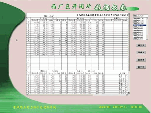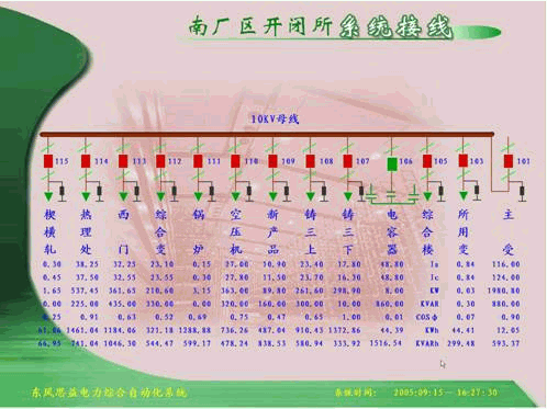 系統(tǒng)能在主控機顯示與實際相對應(yīng)的一次主接線模擬圖,顯示各控制對象的運行狀態(tài)并實時動態(tài)更新??尚纬蓪崟r的和歷史的模擬量連續(xù)變化的趨勢圖,如功率負(fù)荷曲線。數(shù)據(jù)可以在系統(tǒng)硬盤中長時間儲存,為進行負(fù)荷分析和預(yù)測提供全面的第一手資料。