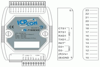 圖6 I-7188EXD 外觀和引腳圖