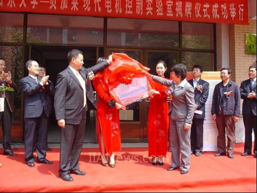 2009年4月28日上午,山東大學—貝加萊電機控制實驗室揭牌儀式在山東大學南校區(qū)隆重舉行。貝加萊(中國)區(qū)總經(jīng)理、山大校友、山東大學客座教授肖維榮博士、山東大學副校長樊麗明女士、設備處處長馬傳峰教授、電氣學院副院長王秀和教授、學院相關負責人以及電氣學院部分老師和學生參加了揭牌儀式。揭牌儀式由山東大學電氣學院院長劉玉田教授主持。