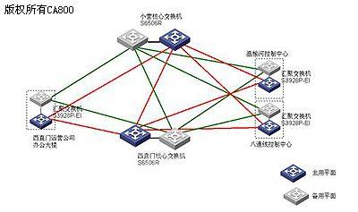 為保障系統(tǒng)可靠性,北京地鐵TCC系統(tǒng)分別在西直門(mén)和小營(yíng)設(shè)立了異地互備的主控中心,在網(wǎng)絡(luò)上則采用雙核心設(shè)計(jì),在邏輯上形成了一種雙平面結(jié)構(gòu),正常情況下,數(shù)據(jù)走主用平面,當(dāng)主用平面設(shè)備出故障時(shí),數(shù)據(jù)將走備用平面,兩個(gè)平面之間可實(shí)時(shí)熱切換:西直門(mén)和小營(yíng)控制中心選用的核心設(shè)備S6506R均配備了冗余引擎、冗余電源等關(guān)鍵模塊。