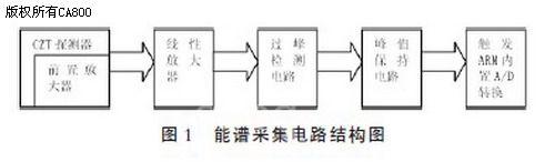 | 摘要:介紹了能譜型核測井儀的設計方案,其目標是研制適用于鈾礦勘查的便攜式測井儀,滿足測井生產的需要。該儀器采用碲鋅鎘CdZnTe 半導體核輻射探測器,高端的32 位嵌入式ARM 處理器S3C2410A 為儀器系統(tǒng)控制核心,并在此硬件平臺上移植了嵌入式Linux 操作系統(tǒng),編寫了基于MiniGUI 的測井儀監(jiān)控終端軟件。儀器具有實時性、體積小、功耗低、靈敏度高、成本低、便于攜帶等特點。 關鍵詞:嵌入式系統(tǒng); Linux; MiniGUI; 核測井儀; 碲鋅鎘半導體探測器 Energy Spectrum Nuclear logging Instrument based on Embedded System SHEN Hong-zhong, TANG Bin (School of Information Engineering, East China Institute of Technology, Fuzhou 344000, China) Abstract: This paper introduces a design project of energy spectrum nuclear logging instrument,the purpose of such instrument was to provide a portable device suitable to the prospecting and exploration of uranium deposit. This instrument uses CdZnTe detector as nuclear radiation detector and S3C2410A, a 32-bit high performance embedded ARM processor, as micro processor unit. Based on this hardware platform, embedded Linux system is ported. The monitoring system of nuclear logging instrument is developed by using MiniGUI. The instruments carry the characteristic of small size, low power, high sensitivity, low cost, and outstanding portability. Key Words: embedded system; Linux; MiniGUI; nuclear logging instrument; CdZnTe detector 1 引言 民用非動力核技術是國家鼓勵發(fā)展的高新技術,其中核測井技術是隨著當代科技的發(fā)展以及它在石油、煤炭、鈾礦等地質礦產勘探領域的應用而迅速發(fā)展起來的尖端測井技術之一。目前, 適用于鈾礦核測井的國產儀器較少, 主要有成都理工大學研制的HFC-1 型γ 能譜測井儀器、核工業(yè)北京地質研究院研制的HD-4002 型綜合測井儀等。這些儀器多數(shù)采用筆記本電腦為測井儀器系統(tǒng)的控制核心,為了能夠更好適應野外測量工作的復雜環(huán)境,便于野外攜帶使用,本文將采用基于32 位處理器ARM 的嵌入式系統(tǒng)為測井儀系統(tǒng)的控制核心,并在此基礎上開發(fā)相應的軟硬件。 2 能譜型核測井儀的理論基礎 眾所周知,地殼的巖石和土壤中都有一定數(shù)量的放射性元素存在著,他們能夠自發(fā)地放出放射性射線。在自然界中,這些放射性射線主要來自鈾-238 系列、釷-232 系列和鉀-40 系列等天然放射性元素。這些放射性元素有著各不相同的γ 射線特征譜峰,如鈾、釷、鉀的特征譜峰分別為1.76 MeV、2.62 MeV、1.47 MeV,因此可以根據(jù)測量所得的能譜數(shù)據(jù),判定測量點位置的放射性元素成分,即進行放射性元素的定性分析。同時,放射性元素的含量與它的γ 射線強度成正比,因此只要計算出放射性元素的γ 射線強度,就可以得出相應的放射性元素含量,放射性元素定量解釋方法主要有平均含量法、傳統(tǒng)剝譜法與逐點剝譜反褶積解釋法等。 能譜型核測井方法是通過研究天然產生或人工激發(fā)的放射性射線譜沿井軸的分布特點而確定該地層中的某些元素成分和含量的一種無損檢測方法。能譜型核測井儀就是使用能譜型核測井方法在野外現(xiàn)場測量伽瑪射線能量譜,分析鈾、釷、鉀等放射性元素的性質和含量的一種儀器。 3 核測井儀的總體方案設計 能譜型核測井儀必須滿足體積小、性能穩(wěn)定、功能強、靈敏度高、便于野外攜帶使用等需求。針對這些需求,對能譜型核測井儀提出以下的設計方案: 3.1 數(shù)據(jù)采集硬件系統(tǒng)設計方案 數(shù)據(jù)采集硬件系統(tǒng)主要由井下探管、自動絞車、能譜采集電路組成。 井下探管主要包括核輻射探測器、前置放大器、探管外殼、電源等。目前國內外的核輻射探測器主要有閃爍體探測器(如NaI(T1)無機晶體閃爍器)、半導體探測器(如高純鍺HPGe 半導體探測器、碲鋅鎘CdZnTe 半導體探測器)等。室溫碲鋅鎘(CZT)半導體核輻射探測器是繼閃爍體探測器之后發(fā)展起來的一類新型先進的探測器,室溫半導體核輻射探測器被認為是一種理想的探測器,它既具有低溫半導體探測器的能量分辨率好,又具有閃爍晶體探測器的探測效率高,同時還具有體積小、重量輕、攜帶方便等優(yōu)點,因此選擇碲鋅鎘(CZT)半導體核輻射探測器為能譜型核測井儀的探測器。探管外殼用不銹鋼材料制作,同時做好防水密封性能,能滿足在測井的高溫高壓條件下正常工作。 自動絞車負責控制井下探管的運動,實現(xiàn)探管在測井中進行逐點測量方式或連續(xù)測量方式的移動功能,并向嵌入式系統(tǒng)控制核心傳送井下探管的深度值。 能譜采集電路實現(xiàn)對碲鋅鎘(CZT)探測器輸出的電脈沖信號線性放大、調整與去除信號噪聲,并將測量脈沖信號的范圍平均分成多個脈沖幅度間隔,然后統(tǒng)計處理后的脈沖信號在各個脈沖幅度間隔的個數(shù),以便形成各個脈沖幅度的計數(shù)分布曲線。能譜采集電路主要由線性放大器、過峰檢測電路、峰值保持電路、觸發(fā)ARM920T處理器S3C2410A內置A/D模數(shù)轉換等組成。其電路結構如圖1 所示。 ![]() 3.2 嵌入式系統(tǒng)在能譜型核測井儀中的應用 3.2.1 嵌入式硬件系統(tǒng) 能譜型核測井儀系統(tǒng)的控制核心ARM920T處理器S3C2410A是一款高端的32 位低功耗RISC微處理器,具有最高工作頻率203MHZ、獨立的16KB 指令Cache與16KB數(shù)據(jù)Cache。存儲系統(tǒng)采用2MB的NOR Flash、128MB 的NAND FL