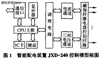 智能配電裝置JXD-240控制模型如圖1所示。裝置主要由CPU主板、調(diào)理電路、電流電壓檢測通道、輸出接口控制回路、通信接口電路、鍵盤顯示接口電路等部分組成,其中在CPU主板上采用具有強(qiáng)大的邏輯運算功能和控制功能的80Cl96KB單片機(jī)芯片,完成系統(tǒng)參數(shù)采樣、計算、控制。對配電柜而言,防止電磁干擾造成裝置的誤動作是首要解決的問題,而執(zhí)行元件抗干擾性至關(guān)重要。采用普通繼電器, 由于其銜鐵質(zhì)量小,電磁干擾信號很容易使繼電器動作,而磁保持繼電器的銜鐵與普通繼電器銜鐵相比質(zhì)量大,動作慣性大,對電磁沖擊不敏感,電磁干擾信號不會造成磁保持繼電器動作,配電裝置頻繁進(jìn)行關(guān)、合操作時所產(chǎn)生的強(qiáng)干擾信號也不會造成裝置誤動作,可以提高裝置穩(wěn)定性、可靠性。