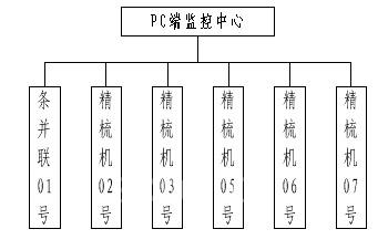 精梳機是近年來在紡織行業(yè)使用較為普遍的一種設(shè)備,其主要作用是排出梳棉生條中一定長度以下的短纖維,提高纖維整齊度,進(jìn)一步清除纖維中殘留的棉結(jié)、雜質(zhì),提高纖維光潔度。條并卷聯(lián)合機是精梳工序的準(zhǔn)備設(shè)備,通常情況下,一套精梳設(shè)備由一臺條并卷聯(lián)合機和五臺精梳機組成。該產(chǎn)量監(jiān)控查詢系統(tǒng)應(yīng)用于精梳設(shè)備的結(jié)構(gòu)示意圖如下所示: