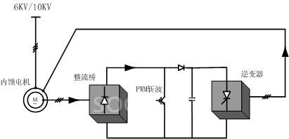 SAVER系列轉子變頻調速系統(tǒng)是通過在轉子回路串入等效電勢,改變其大小來改變電機轉速,并將轉子轉差功率回饋給電機電源的節(jié)能調速方法。內反饋繞組及固定逆變角的逆變器構成固定的電勢源吸收轉差功率,IGBT斬波器由PWM信號控制,形成可變的轉子回路等效電勢。